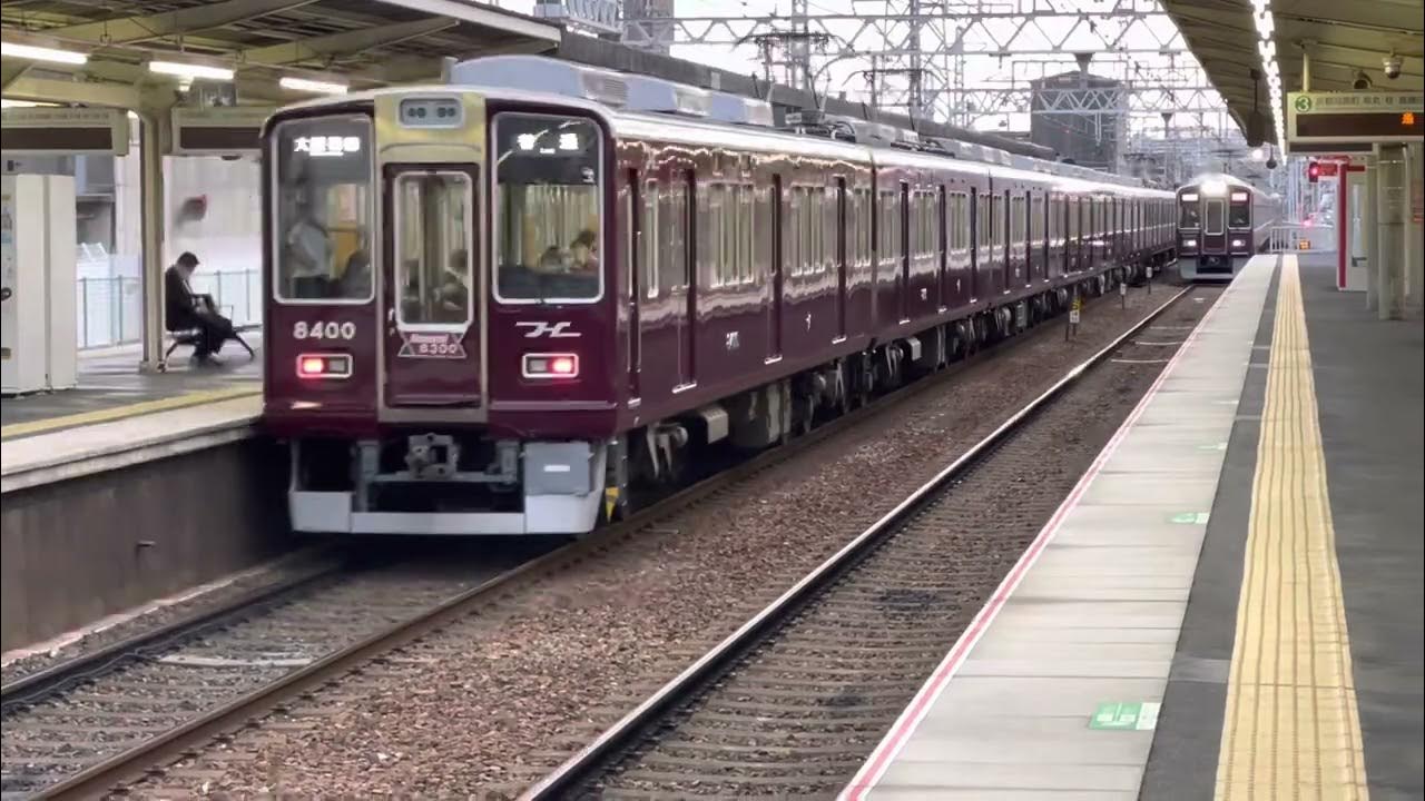 阪急京都線正雀駅8400系普通大阪梅田行き発車と9000系準特急京都河原町行き通過 YouTube